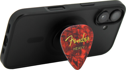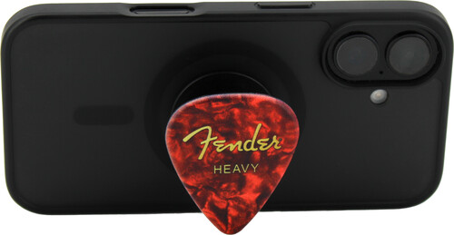 This guitar pick-shaped Fender phone grip not only looks great, it’s also easy to apply and comfortable to hold, The checkered and red-marble designs mimic the real Fender pick.