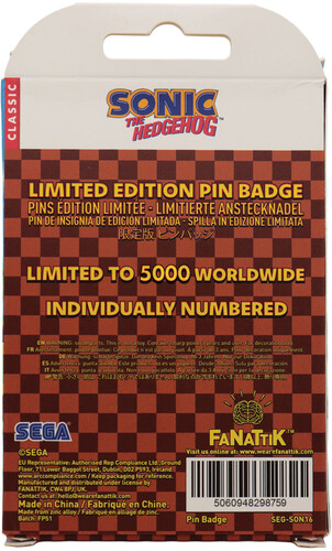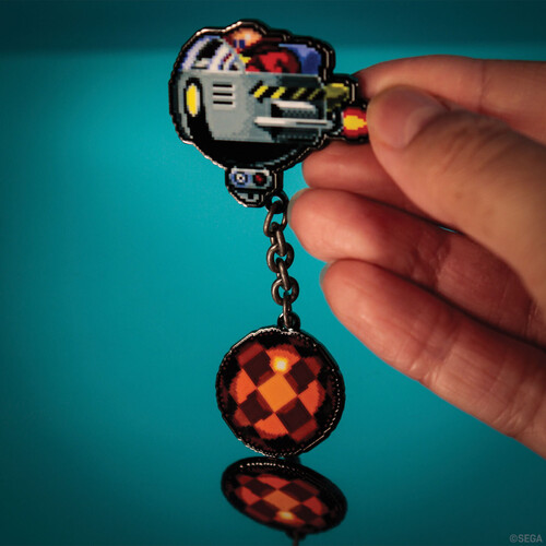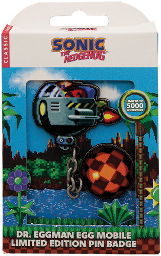 This limited edition chained pin badge depicts the Egg Mobile as it was seen in the very first Sonic game 35 years ago, and it is connected by a chain to one of its weapons: a wrecking ball. Each pin badge is individually numbered on the wrecking ball as one of 5,000 worldwide.