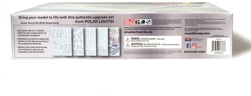 This 1:1400 scale plastic model kit offers an excellent representation of this iconic starship's distinctive saucer and nacelle design. It includes all the pieces needed to build a detailed replica of the USS Cerritos, complete with authentic full-color water-slide decals. The kit comes molded in translucent plastic and equipped with plenty of clear parts to provide everything necessary for custom lighting. Achieve a higher level of authenticity with the USS Cerritos Aztec Decal Set from Polar Lights (sold separately).