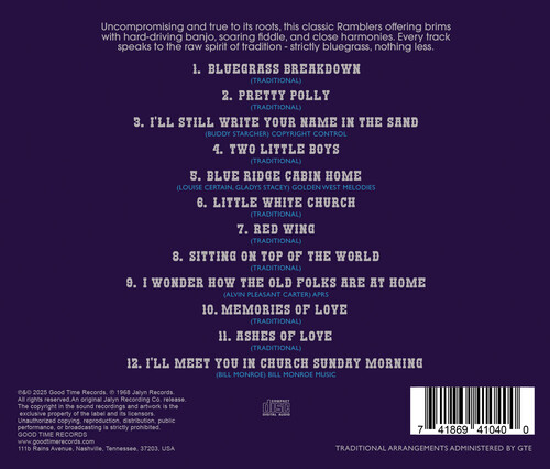 Uncompromising and true to it's roots, this classic Ramblers offering brims with hard-driving banjo, soaring fiddle, and close harmonies. Every track speaks to the raw spirit of tradition - strictly bluegrass, nothing less.