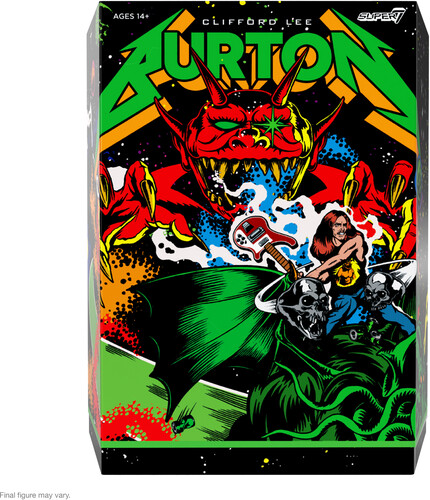 The latest 7” scale, highly articulated Cliff Burton ULTIMATES! Figure is inspired by the fantasy “Superhero Poster” art by designer Juan Machado.