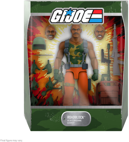 This 7” highly articulated G.I. Joe ULTIMATES! Roadblock features detailed sculpting and premium paint detail inspired by the G.I. Joe animated series, and comes with interchangeable heads and hands, and multiple accessories.