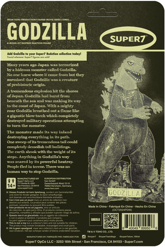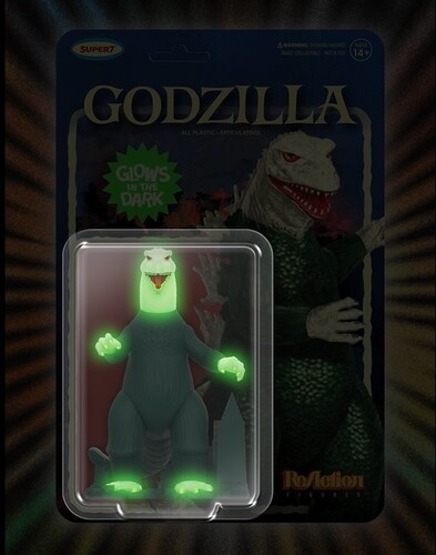 This 3.75” scale, articulated Godzilla ReAction Figure, inspired by the Canadian variant of the original 1960s model kit under the Toho license, brings the King of the Monsters to life like never before. With glowing details that will light up your shelves at night, this figure embodies all the terrifying power of the original Godzilla, with a new, dramatic twist.