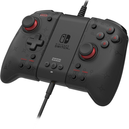 Roll out the red carpet for HORI's newest addition to the revolutionary Split Pad Pro line! The HORI Split Pad Pro lets players game with the full-size controller experience in handheld mode. Now including the Split Pad Pro Attachment which allows gamers to use the Split Pad Pro as a high-quality wired controller when attached. Featuring full-size analog sticks, a precision D-pad, and large shoulder buttons designed for comfort and accuracy, even during marathon gaming sessions. Advanced features include assignable rear triggers, Turbo functionally, headset jack, audio controls, and more. Perfect for high-pace action titles, in-depth adventure games and many other genres. Game any way you want with the Split Pad Pro Attachment Set! Compatible with Nintendo Switch and Nintenod Switch - OLED Model (Does not include Motion Controls, HD Rumble, NFC, or IR camera.) Officially Licensed by Nintendo.