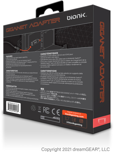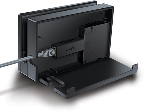 A high-speed USB Ethernet adapter made specifically for Nintendo Switch and allows for a fast and secure connection while gaming. Designed to fit discreetly into the Nintendo Switch charging dock and features a unique grill pattern that does not block the systems fan and allows for proper ventilation.