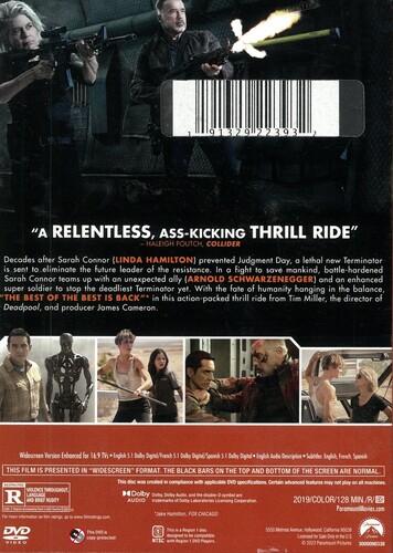 Decades after Sarah Connor (Linda Hamilton) prevented Judgment Day, a lethal new Terminator is sent to eliminate the future leader of the resistance. In a fight to save mankind, battle-hardened Sarah Connor teams up with an unexpected ally (Arnold Schwarzenegger) and an enhanced super soldier to stop the deadliest Terminator yet. Humanity's fate hangs in the balance in this action-packed thrill ride from Tim Miller, the Director of Deadpool, and Producer James Cameron.