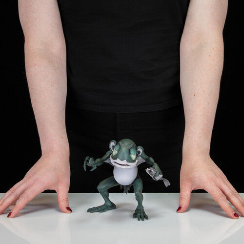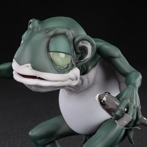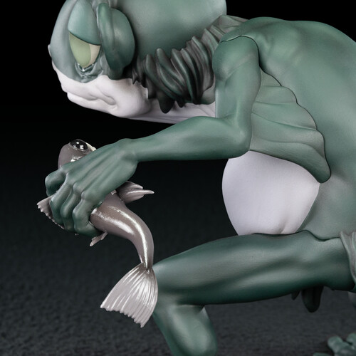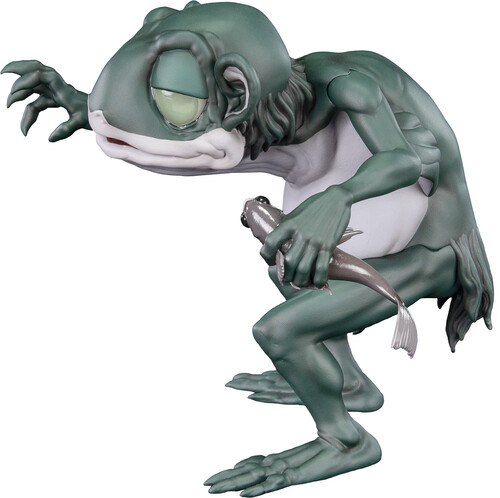 Gollum features a swappable arm to be displayed holding a slippery, struggling fish about to be devoured!