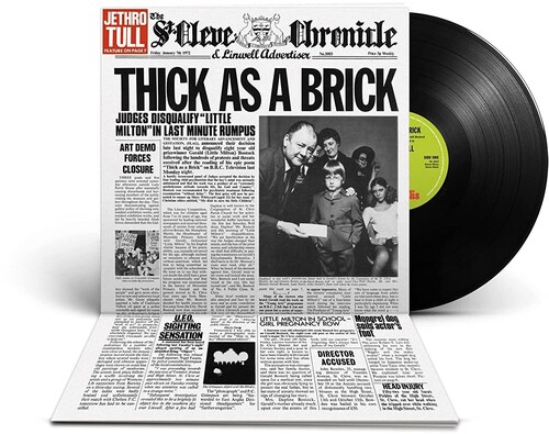 Unlike any other records on the market, the album is set inside a broadsheet newspaper, “The St. Cleve Chronicle & Linwell Advertiser”. The newspaper includes many news articles packed full of continuing jokes, a crossword, connect-the-dots and much more. It was originally written by Ian Anderson, Jeffrey Hammond and John Evan, with the newspaper taking longer to put together compared to the music. As reported in the paper, the lyrics were credited at the time to the fictitious child character, Gerald Bostock, whose parents supposedly lied about his age. Amongst the many articles is a frank review of the album itself. Thick As A Brick was the first album to feature drummer Barrie Barlow, who featured alongside Ian Anderson, Martin Barre, John Evan and Jeffrey Hammond.