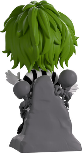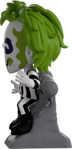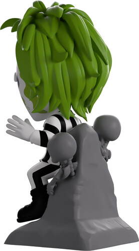 Beetlejuice, Beetlejuice, Beetlejuice! And with that, we’ve summoned the ghost with the most to Youtooz for his diabolical debut! At 4.7 inches tall and sitting atop a grey tombstone that has a pair of skeletons crawling out from the top, a sly smile crosses his dirty, stained face as an eyebrow raises playfully over purple-shaded eyes.