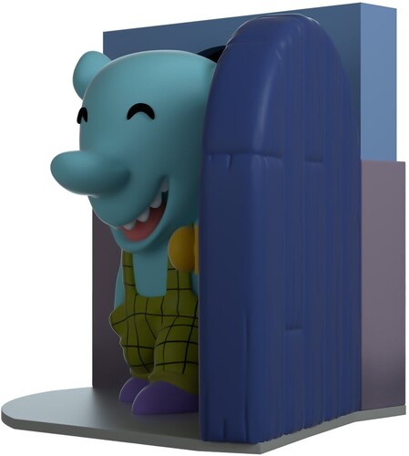 Wearing a bright smile on his face, Winslow makes his entrance standing at 3.6 inches. He is seen walking through his wall hole, with his left hand opening his door and his right hand in his pocket. He is dressed in his original green plaid overalls and purple shoes.