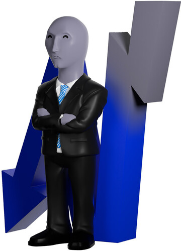 Standing at 5 inches tall, Stinks has been immortalized in vinyl form. Fooling audiences looking professional in a black tailored suit and tie, this man may be the worst investor in the world. Behind him is a graph, pointing down showing the awful returns of the year.