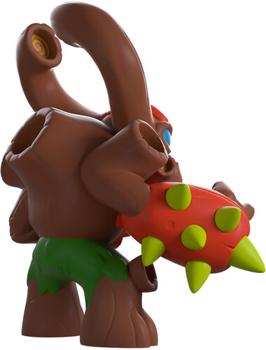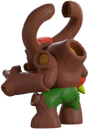 You wouldn’t be ‘bark’ing up the wrong tree if you thought Tree Rex was going to get their very own Youtooz! Standing at 4.2 inches tall with his brown wooden jaw opening up into a deep smile, furrowed blue eyes look out from underneath an orange headpiece as a pair of thick horns curl inwards. With sturdy trunks extending from each joint and the center of his back, his left arm is a spiky green and orange cannon as green foliage covers his waist.