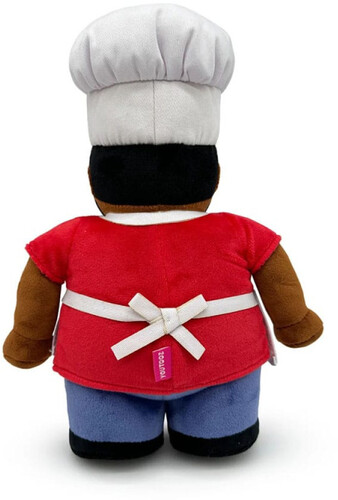 Standing at 9 inches tall and wearing a white apron that simply says ‘chef’ over a red t-shirt, he wears blue jeans and black shoes. Of course, what kind of chef would he be without the tall white chef hat that sits atop his head while his expressionless face stares forward with its thick black beard.