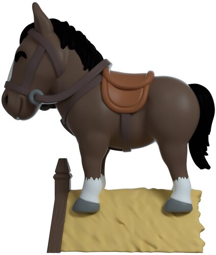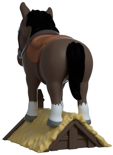 Sculpted at 4.1 inches, Roach does not care for any of Geralt's orders and just wants to do whatever makes him happy. How he got up there, no one knows. It's okay, don't question it. Roach is dressed with a light brown riding mount and leather straps wrapped around him. He is seen standing on top of a hay covered wooden roof.